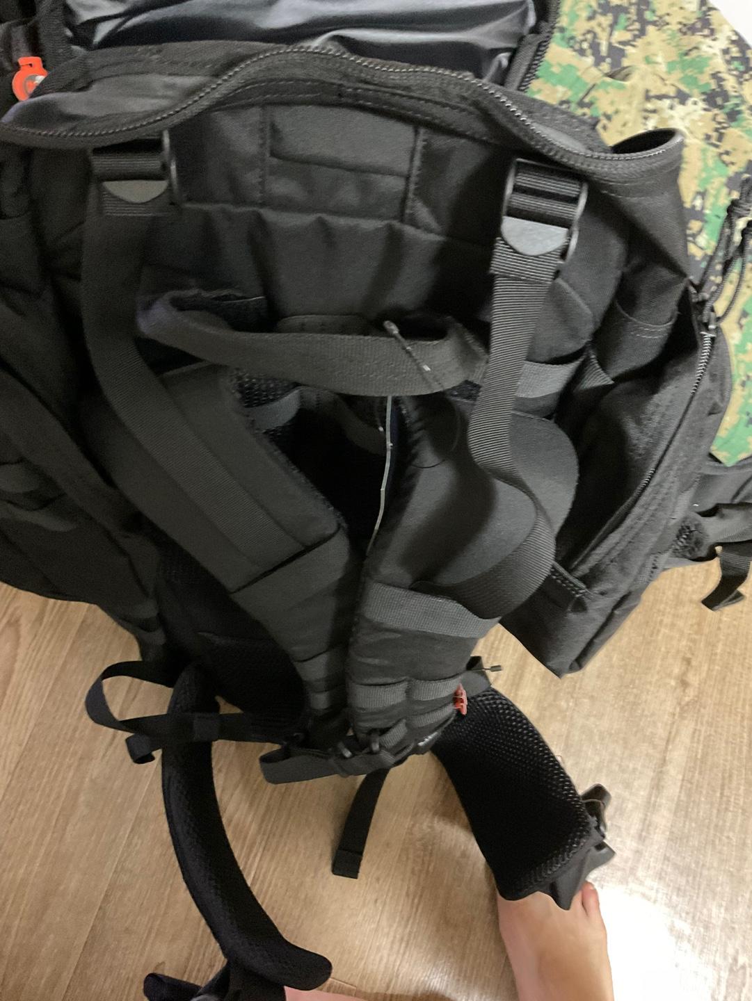2. 다른 한가지는 계륵같은 날개군장입니다. 275mm신발은 아슬하게 안들어갑니다. (슬리퍼는 들어감) 그리고 몰리시스템이아니라 주군장에 묶는 벨트에 결속되어있어서 애매한 포지션입니다. 특히 군장 결속 마무리할때