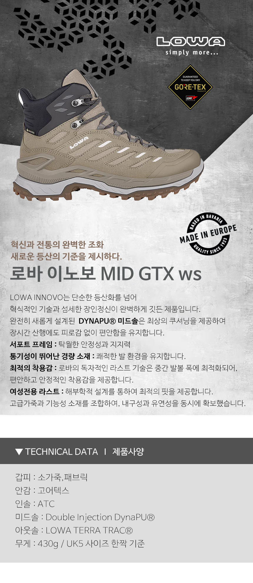 로바 이노보 MID GTX WS 듄/그레이 4833 여성등산화
