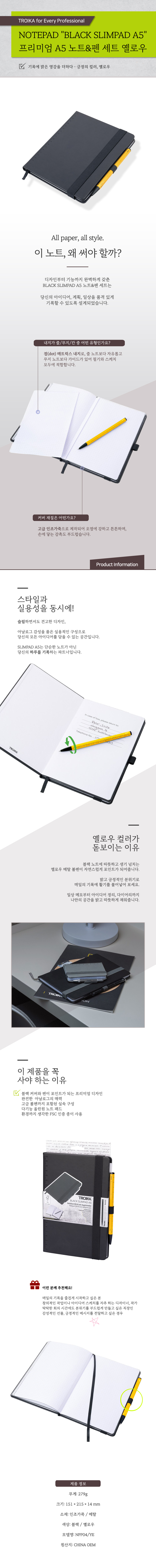 트로이카 프리미엄 노트&펜 노트패드 (옐로우)