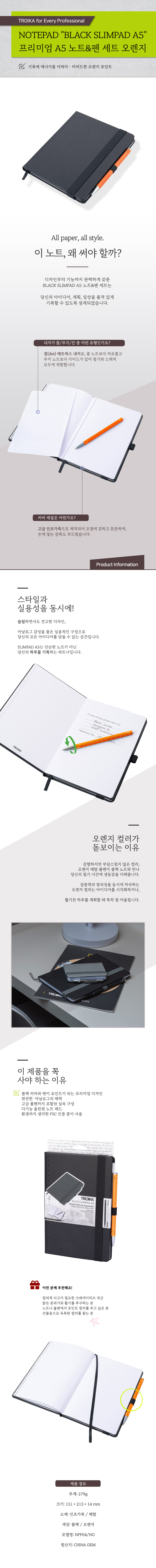 트로이카 프리미엄 노트&펜 노트패드 (오렌지) |