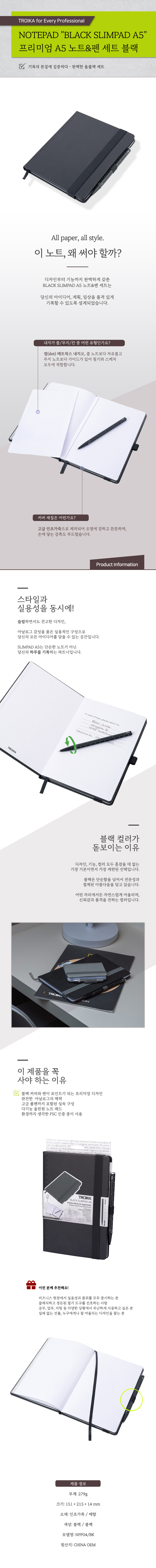 트로이카 프리미엄 노트&펜 노트패드 (블랙) |