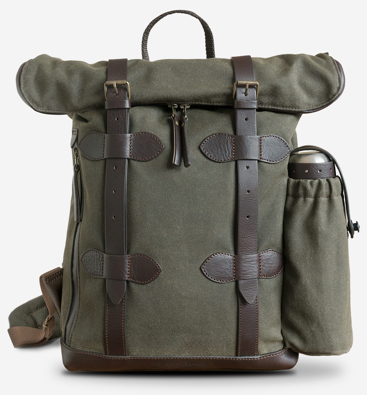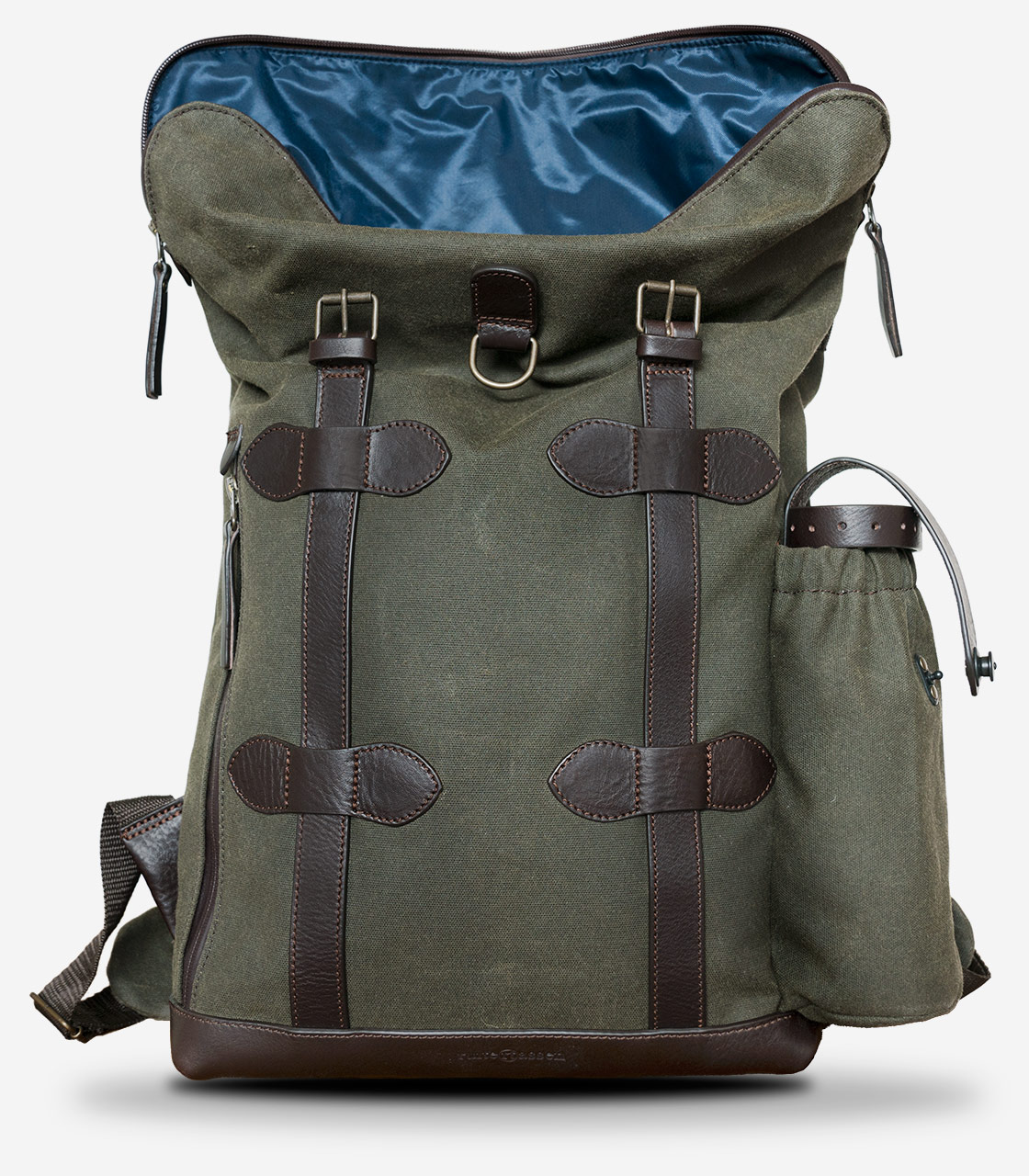 British Millerain 왁스 코튼, YKK 방수 지퍼, 베지터블 레더 트림을 적용해 처음부터 오래 쓰는 방향으로 설계된 백팩입니다. 눈에 띄는 것은 디자인이지만, 오래 쓸수록 체감되는 것은 결국 소재의 차이입니다.