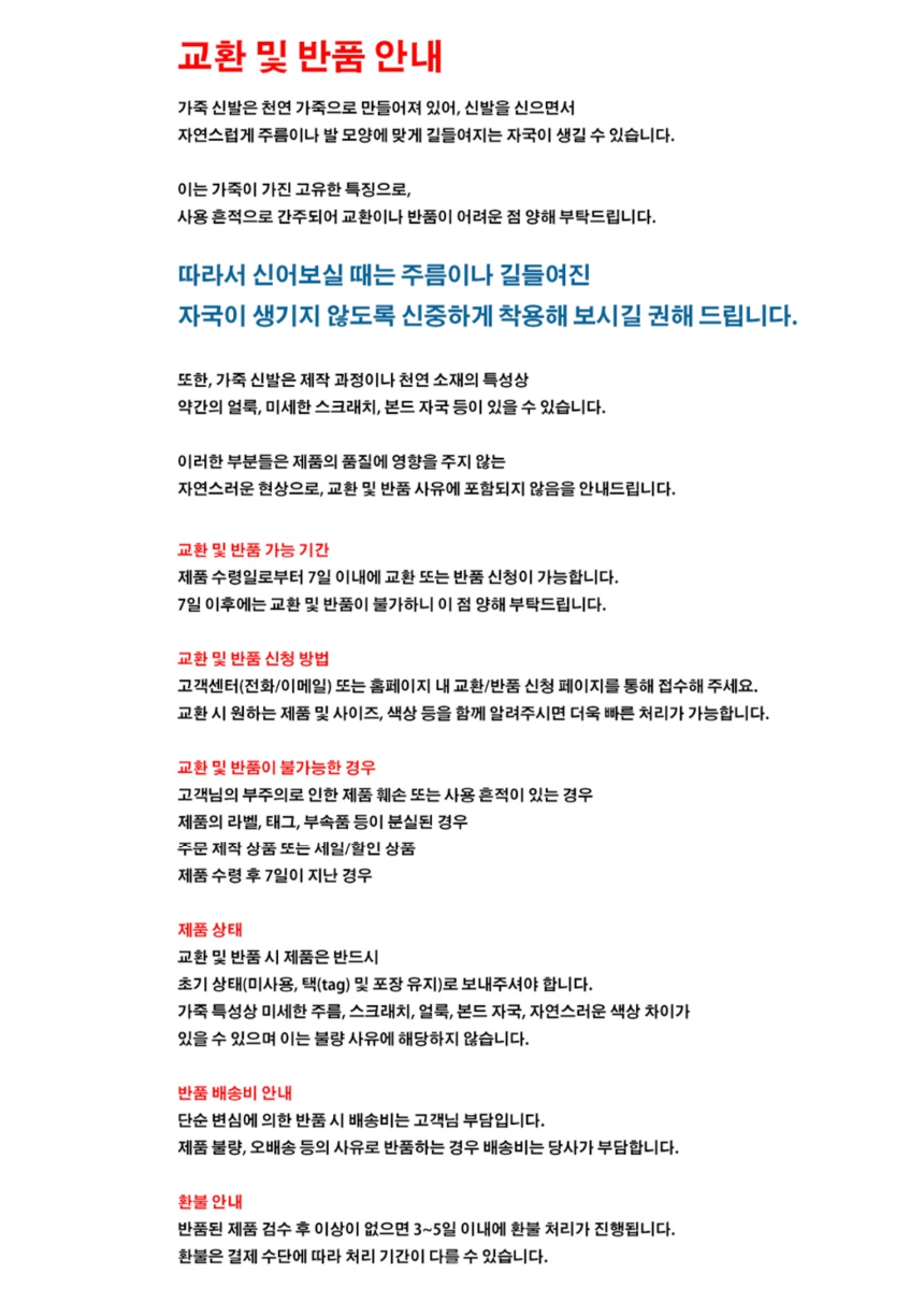 불가능하니 반드시 신으시기 전에 연락주시기 바랍니다.