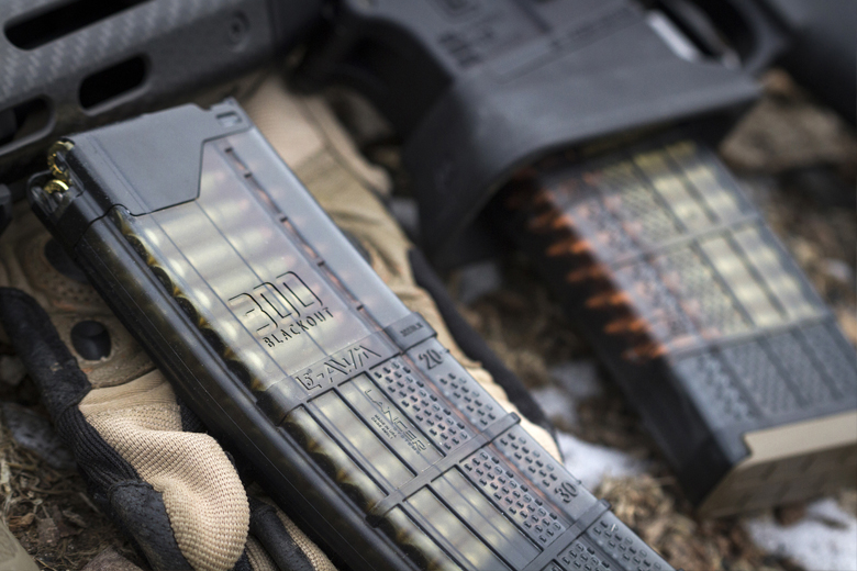 200그레인 이상의 탄알을 사용하는 아음속 .300BLK 탄약을 장전 가능한 탄창