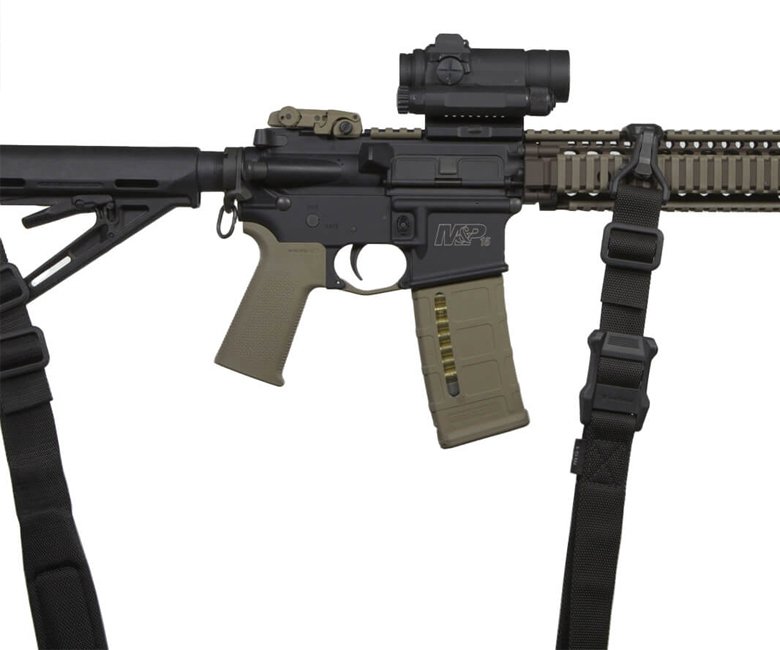 - 슬링을 측면으로 배치하여 조준 시야 확보 및 사격 자세 간섭 최소화